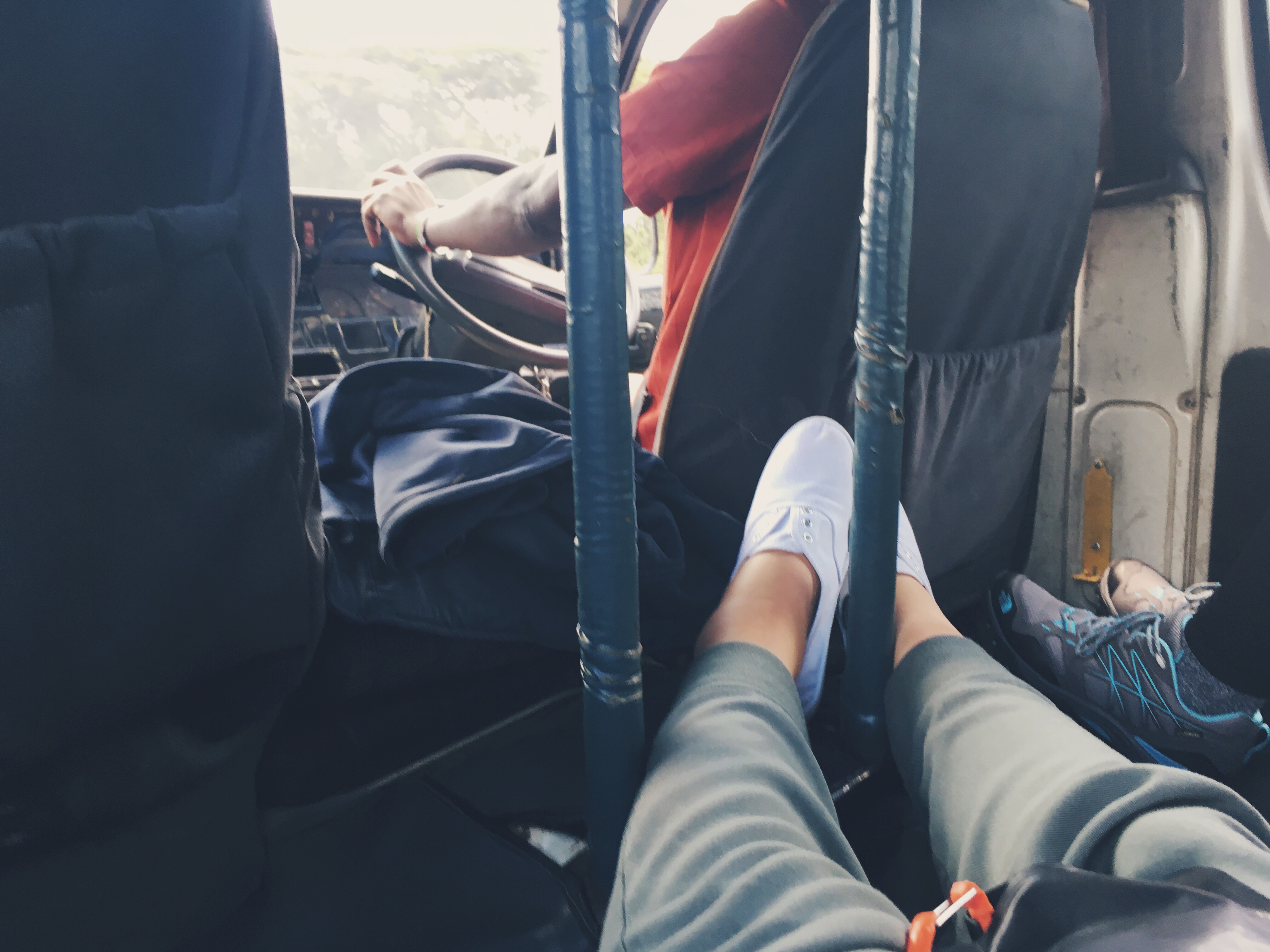 Our new ride is an upgrade. The old busted van was pretty rickety. This new truck zips right along and we’ve caught the group within an hour.
