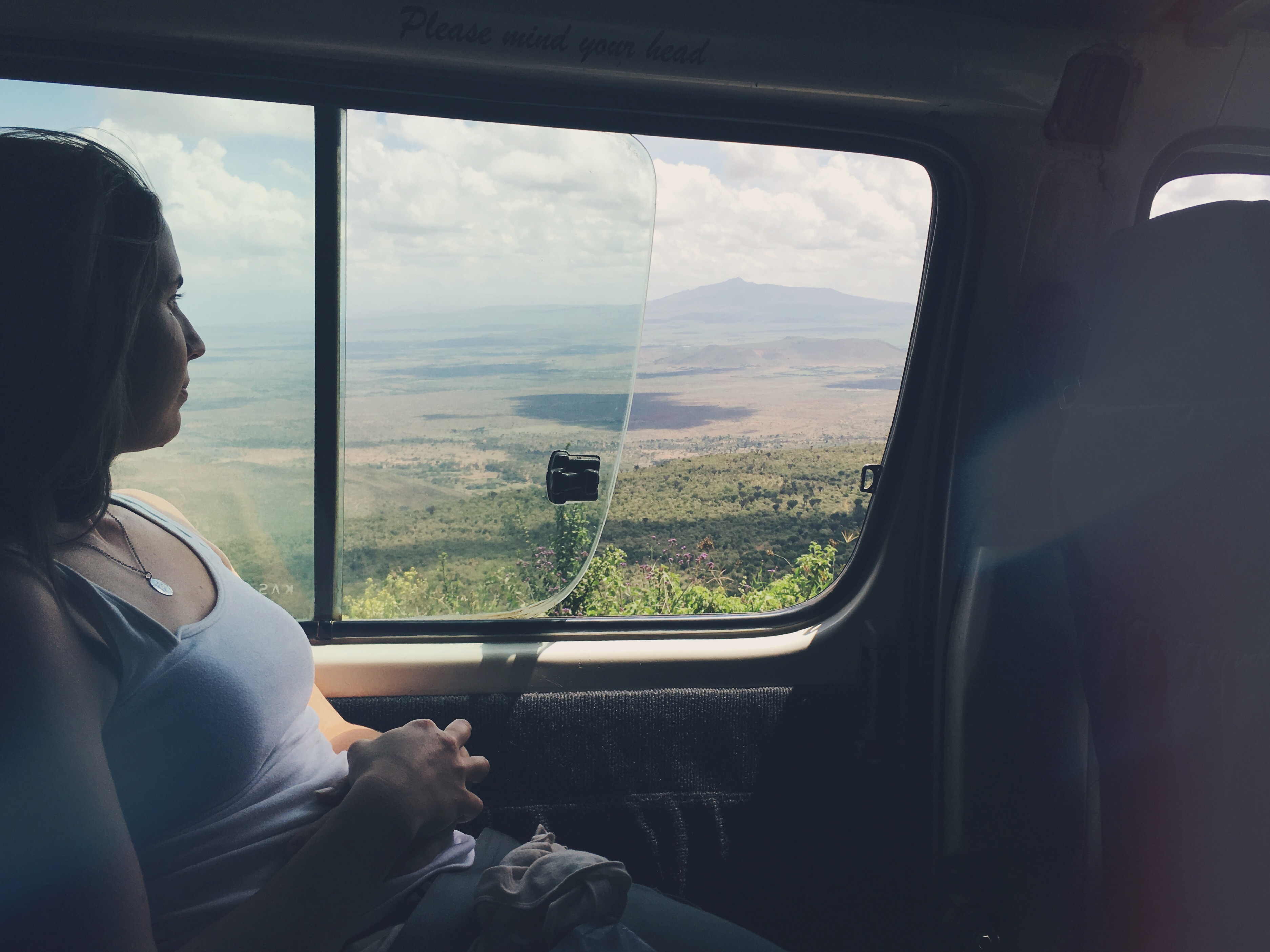 Nairobi is a gong show. Dusty, indescribable chaos. Our driver has a stop to make before leaving the city, and brings us along, consent not necessary. We wait with the van, in the crowded parking lot, catching our fair share of curious glances.