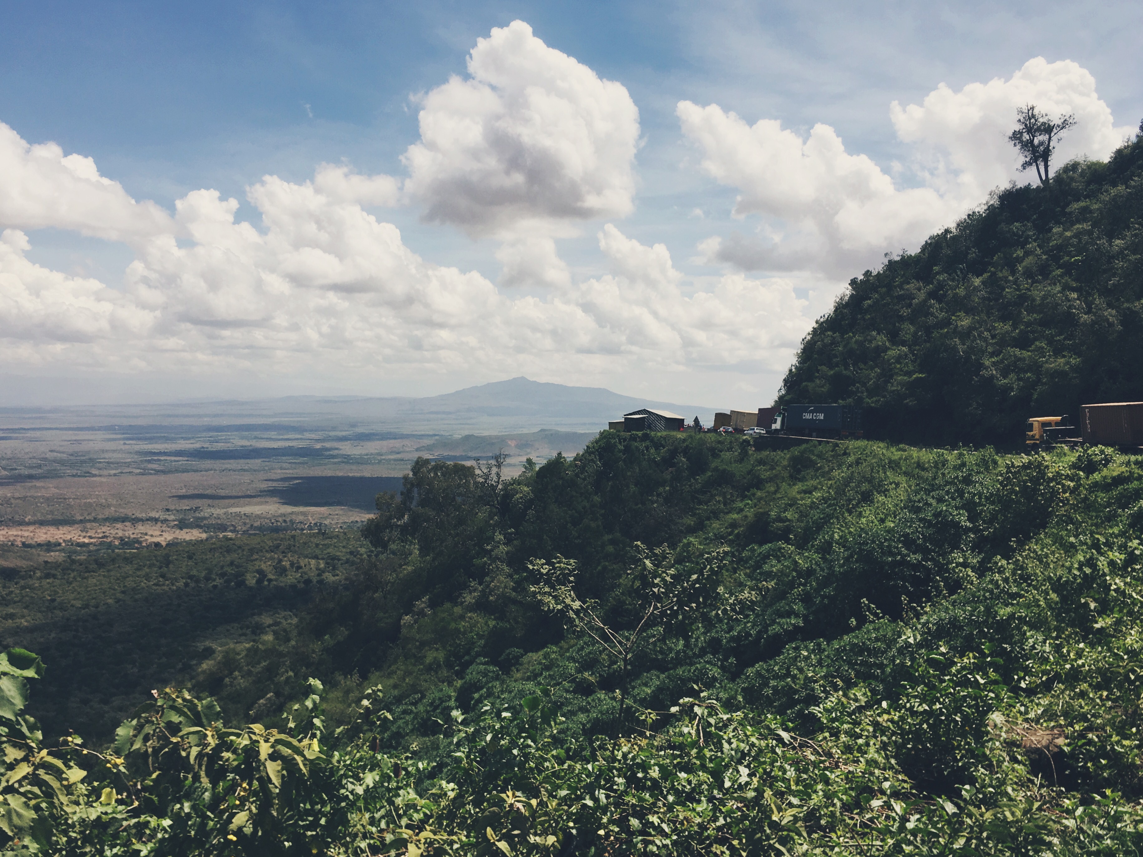 Soon enough we’re making our way out of city. Traffic is a mess. As expected. Not so expected is the monkeys on the road shoulder and barefoot children carrying/hawking dead chickens. In my sleep deprived delirium it all goes by quite quickly. I come to as we descend into the Great Rift Valley, in a line of trucks as far as the eye can see, truly awe inspiring. Everyone’s gearing down, breaks are warming up. Locals are selling goods on the roadside pullouts. I’d take a sheep skin if customs wouldn’t have a fit.