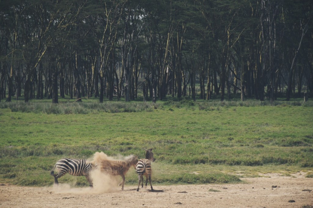 The following morning we are up and off on a game drive through Nakuru National Park, where, at one point, baboons had hopped down from the canopy onto the top of the bus – terrifying yes – and if you grew up with the Simpsons like me, you know there’s one specific episode that’ll conjure up in memory. Chris our guide shouted manically to shut all the windows, since the baboons knew how to reach down, check for any openings and potentially hop in to do a quick b&e massacre. Fun times. We were lucky to see an array of wildlife that Nakuru National Park is home to; a pair of critically endangered black rhino in the distance, a lone depressing lion, herds of zebra & antelope, giraffe and many pink flamingos in the shallow soda lake. We stop for lunch and disembarked in a stand of trees where there is an observatory and armed men on the lookout for predators, we were warned to not wander far. We returned to our cabin for the night and had the best sleep in a week, enjoying it even more knowing we were camping the next night and sleeping in the air the night after.