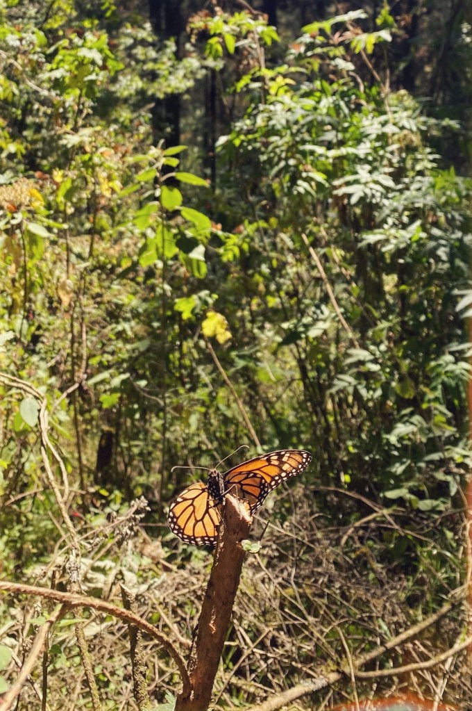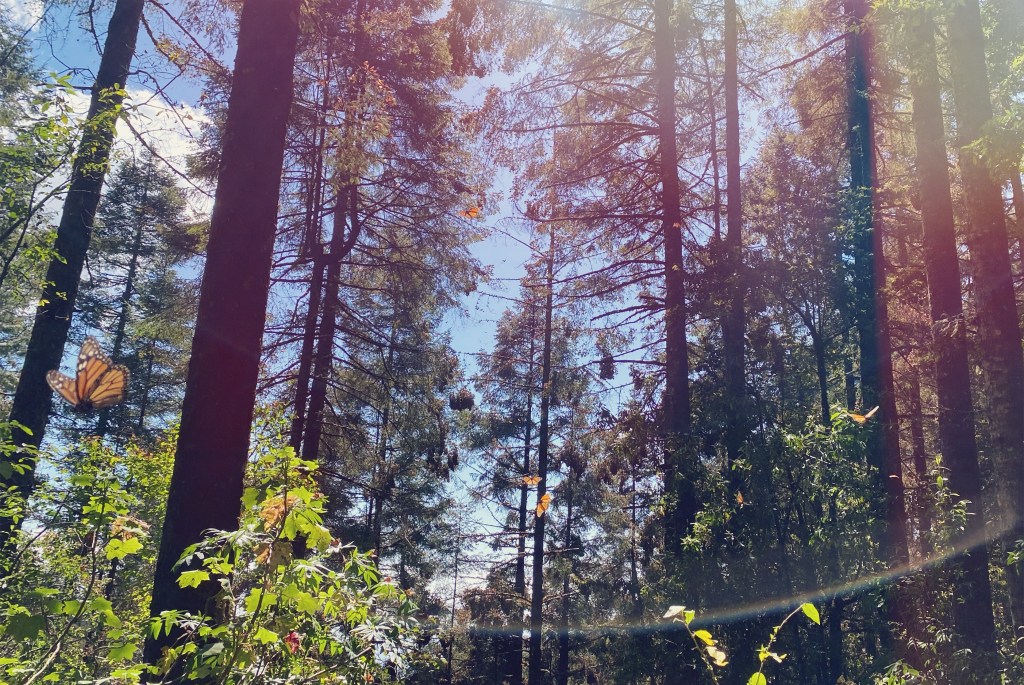 It was about a 2 hour drive to the area where the monarchs cluster en masse. A magical piece of land still owned by the locals and protected. There was talk that the government was trying to gain control, and I can only hope that doesn’t happen. We chose to rent horses for the ride up the mountain, roughly half an hour, and finished off the trek on foot. We had an additional guide to share some information about the monarchs, and show us the way. There must’ve been tens of thousands, in massive clusters, and fluttering around, like falling leaves but not falling to the ground. The monarchs from all over North America are divided into two classifications, east and west of the Rockies. The eastern monarchs, their offspring, will eventually be making their way to central Mexico, while western monarchs will reproduce in inland California.