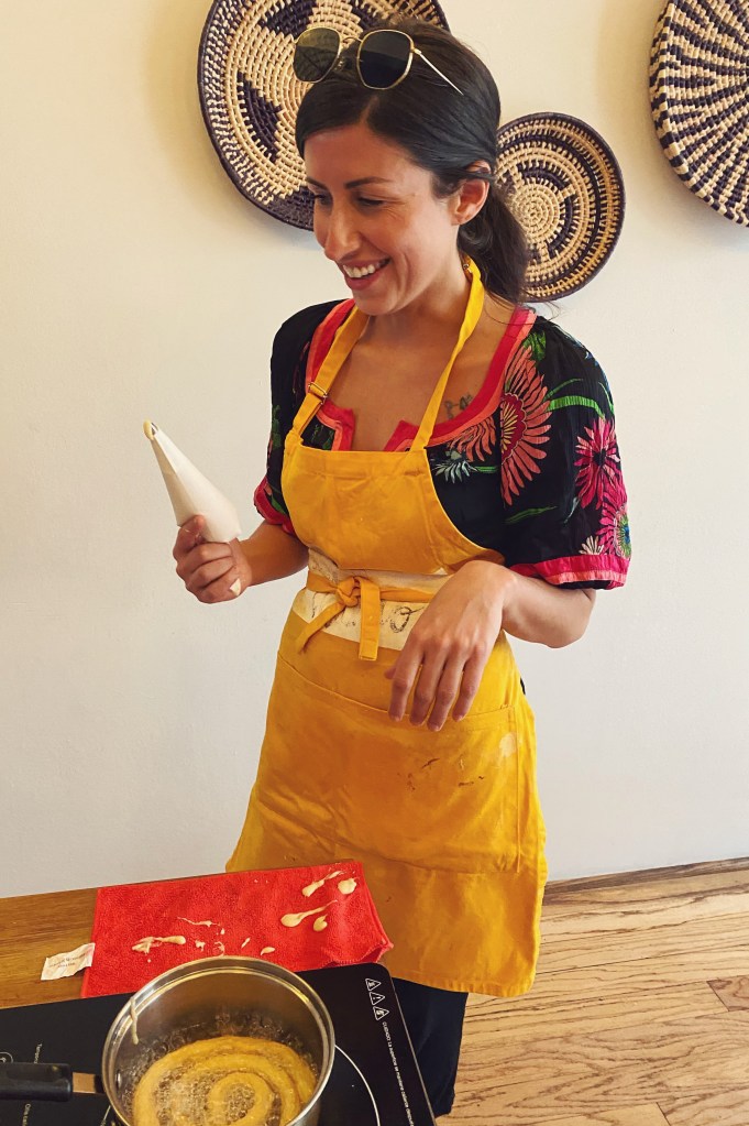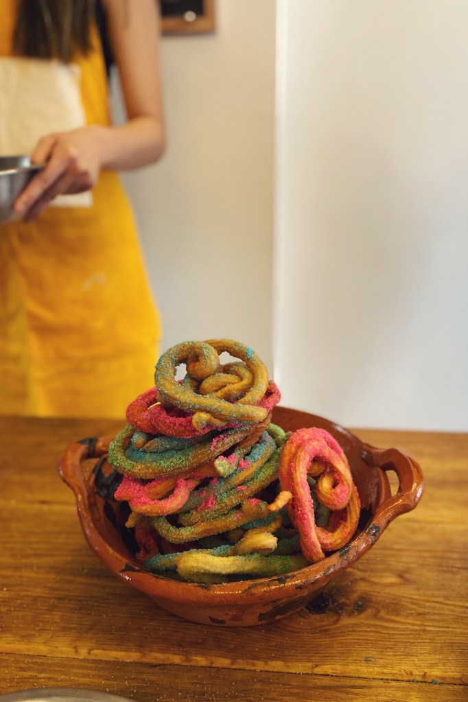 Day five was up, March 1st, our second to last day, and it was dedicated to churros. We’re churro freaks. We ubered over to the trendy little neighbourhood of Condesa, which was quaint and lovely, and gave me English Bay vibes, safe & chill, cute rich city. We were a couple minutes late due to traffic, but Christian, the host, from Venezuela, and the other guests (young Americans) were all very welcoming and understanding. Christian started us with a brief overview of the cooking class, as we were also making Mexican hot chocolate, and a brief history of both fried donuts, churros (of Chinese descent) and the discovery of chocolate by the Mayans. We got to work and after not too long we were frying dough and dusting with sugar. As a group we assembled a massive stack of colourful churros, and had a sugar rush inducing feast. In the afternoon we perused around the old town for gifts to bring home, and organized for departure, as our next and final day was going to be very very busy.