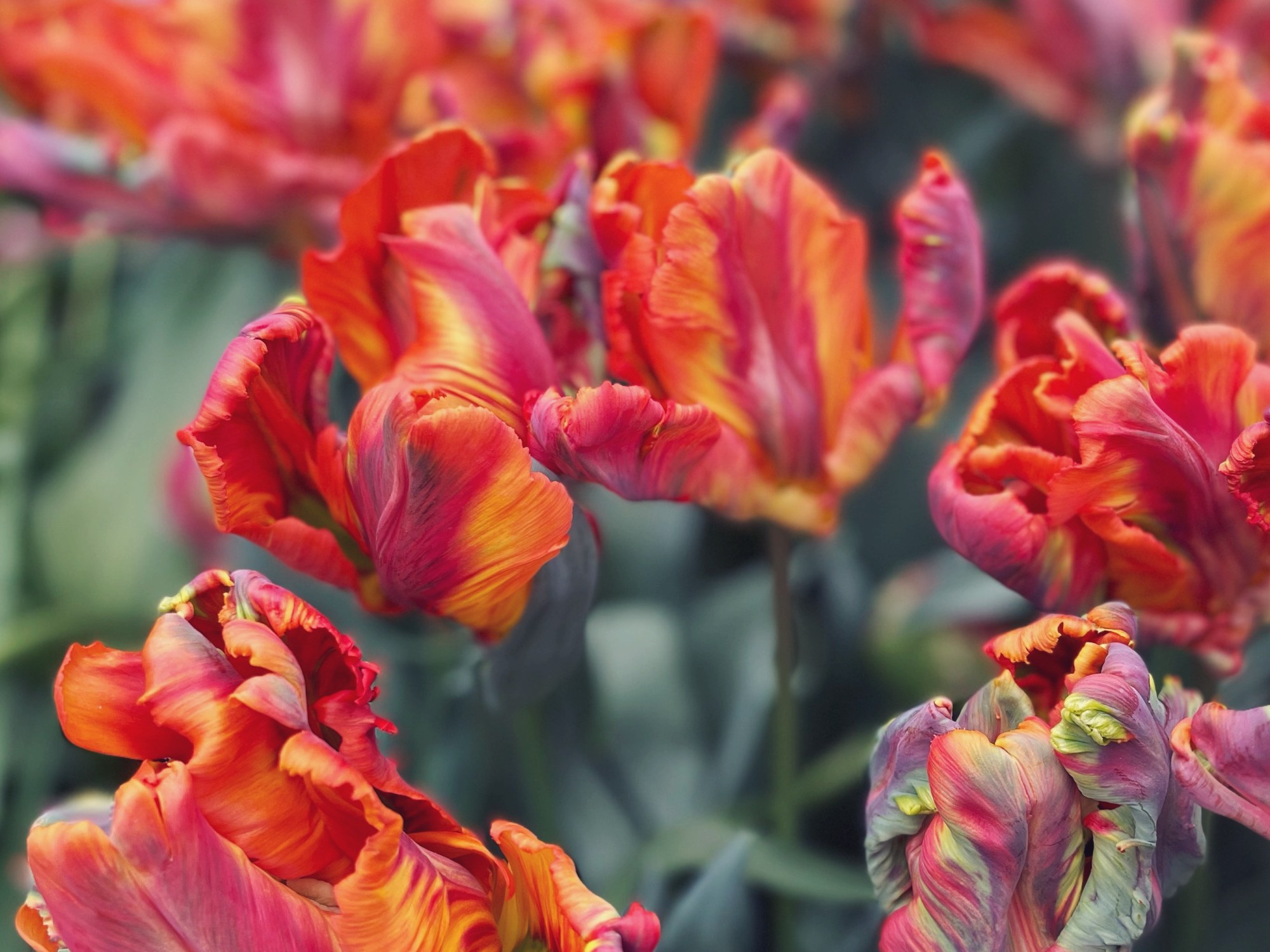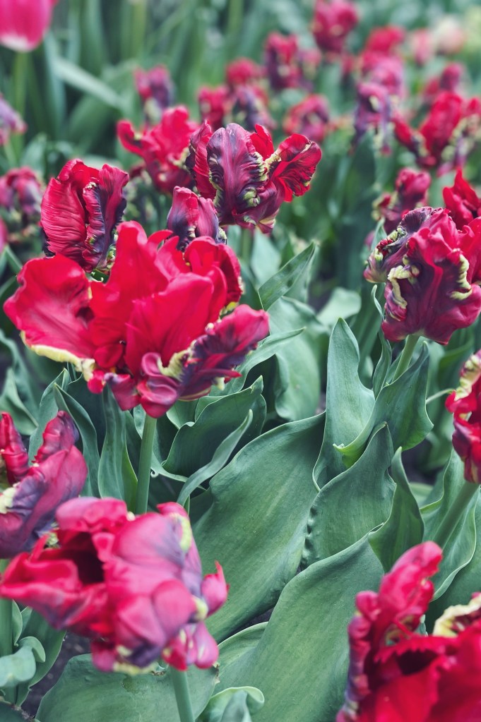 After traipsing around outside, getting thoroughly turned around and seeing a mind boggling amount of blooms we headed into the massive covered greenhouses to get out of the weather and see some rare tulip varieties up close. I’ve always been a big fan of parrot tulips, with their unique thick ruffled petals, and the array inside certainly did not disappoint.