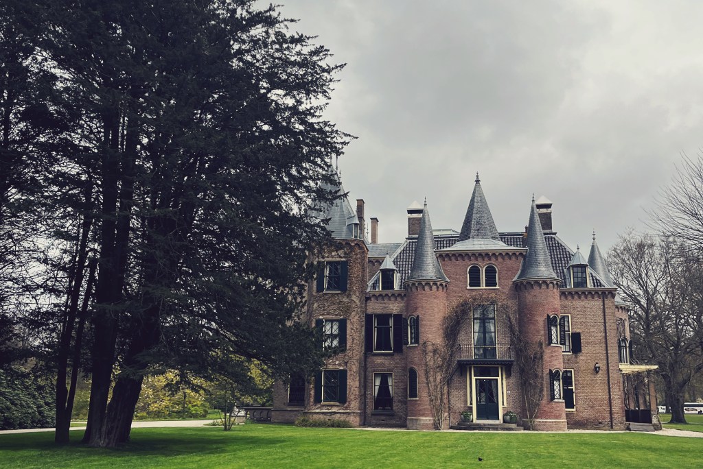 As the morning went on, closing in on noon, the crowds were starting to really flood in, tour groups arriving, class field trips, busses and humans as far as the eye could see. We were satisfied with our experience, getting peopled out, and ready for lunch, so we checked out and headed across the massive parking area to the main road. Access to the trails leading to Keukenhof Castle were adjacent to the gardens and just a short jaunt through a haunted looking forest. We passed a handful of friendly grannies assuring us we were headed in the right direction, meanwhile google maps wanted us to trespass over a pointed fence. Classic.
