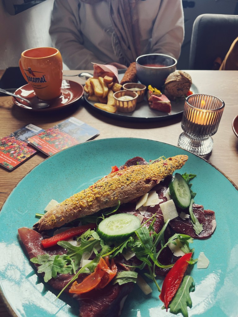 I’d already sussed out the menu at the castle, and it did not disappoint. We arrived to ample seating in a cozy warm dining area, ordered two hot chocolate’s with fresh whipped cream right off the bat to warm us up. We split a hearty spread; a ribeye sandwich, tomato soup, croquettes, veggie wrap & chips. It was plenty of food, and well executed. We finished up, took in the castle grounds and caught our ride back to the hotel. What ubering lacks in morals they make up for in convenience.