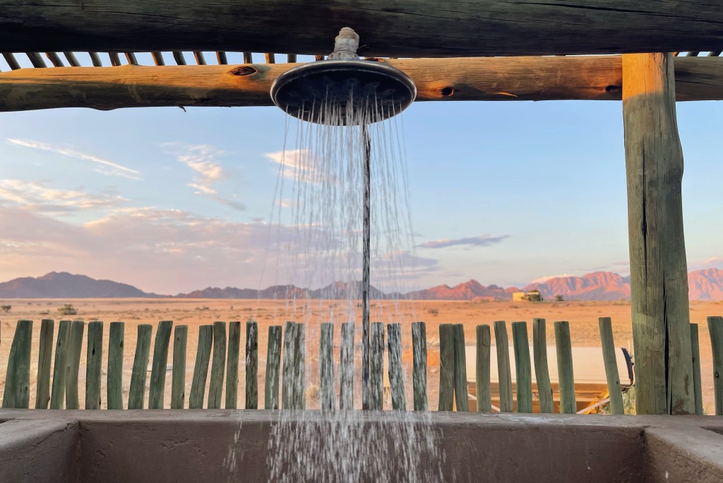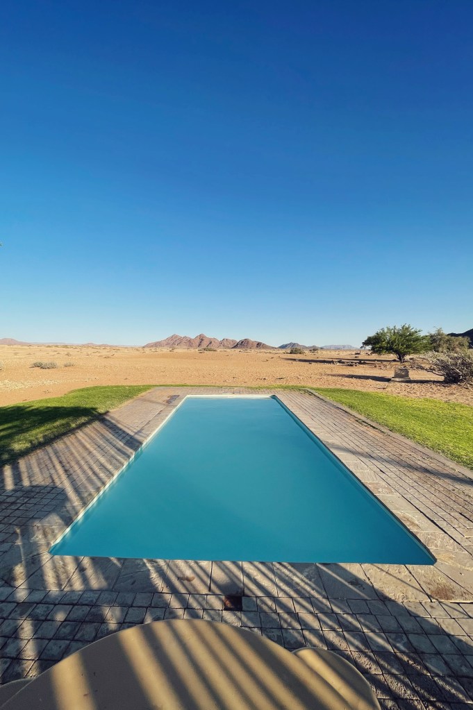 We made a quick stop off at the Tropic of Capricorn for pictures. A tiny town, Solitaire, in the literal middle of nowhere, for warm apple pie with fresh whipped cream and checked in at Sossus Oasis Camp in Sossusvlei. The name “Sossusvlei” is a mixed origin name and roughly translates to “dead-end marsh”. Vlei is the Afrikaans term for “marsh”, while “sossus” is the bushmen word for “no return” or “dead end”. The terrain on the way was rough dirt roads, harsh canyon lands and arid dessert. We were melting. All of us immediately slapped up the tents and had a swim, we checked in with the fam over slow wifi and went to bed.