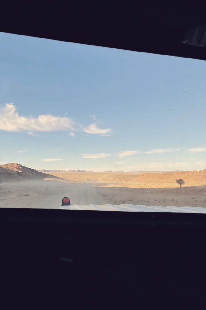 We departed Swakopmund at 8, lucky ducklings. Breakfast didn’t start until 7 at the hostel, and the crew had the last 2 nights kind of off, and they make the rules. We were headed inland, eventually escaped the fog bank and were greeted with inevitable heat, yet again.