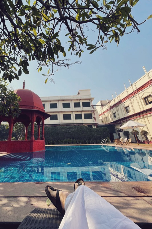We meaner around, exploring less busy corners, but ultimately packing it in around 9, back to the hotel, in time to dip into the breakfast buffet, pleased, still jalebi intact. I spend the rest of the day lounging by the pool reading, Shabiya from the hotel finds me in the afternoon to do some henna, which was lovely of her. She was very sweet, all the staff were. Thor does some exploring on foot and reports back wide eyed. We uber out to dinner, mutton biriyani & tandoori chicken. Our driver was still around when we finished up, so that was an easy evening, wrapped up another one! Off on a new adventure tomorrow!