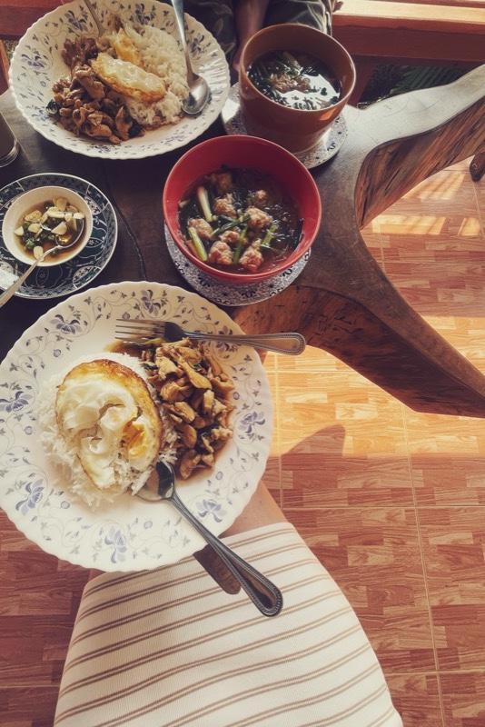 Art & Gop started out working at one of the nice resorts on island, not sure what one. Gop was cooking and Art was doing god knows what. They fell in *love* and decided to start their own shop, “9 Shop”, mid island, and slaved away 15+ hours a day, 7 days a week, locking up and sleeping in the shop until it was time to start it all over again. Living the dream, until they both got burnt out. Also, they had a baby. Luckily, Art’s parents also lived on island and bankrolled a property on the southern end, built a shop for themselves while Art & Gop started the homestay & restaurant a few hundred meters away, and over the years built up 5 bungalows. As time went on, Arts parents needed to retire and move to the mainland and required Art to take over the shop as, on paper, it’s a more profitable business. Big sad.