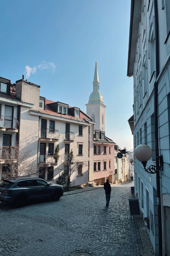 Next was Bratislava Slovakia, just a quick 50 minute train trip. Booked a last minute AirBnB with laundry amenities nice and close to the old town. I feel like I should expand my vocabulary so I’m not just judging places on being cute vs not cute. But Bratislava was CUTE. Quaint, historic, compact, nice buskers for ambiance, not western commercial. Charming. We did a first pass through the old town and up the hill to the castle the evening we arrived and the following day explored the museum in the castle, had a nice light brunch and relaxed. Our accommodation was just across the street from a posh hotel with a lovely restaurant for a convenient meal. Zipped up the “ufo” before departing but it was overrated in my opinion.