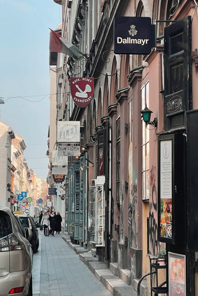 Bratislava to Budapest. Less than a three hour train and by far the nicest, cordoned off rooms of 6 seats, very quiet and smooth. We stayed basically in the octagon, which is a main intersection. Budapest didn’t strike me as having a particular old town section, a slightly more modern vibe. I wasn’t really expecting to like it as the party vibes come off strong, plus being there over the weekend, but it was really quite lovely. Our first dinner was perfect, at Negro Mangalica, named after the local curly haired hybrid mangalica pig. We both had pork dishes, along with fermented pickle starters and cute g&t’s. A little peruse of the ruin bars and off to beddies, I had morning priorities.